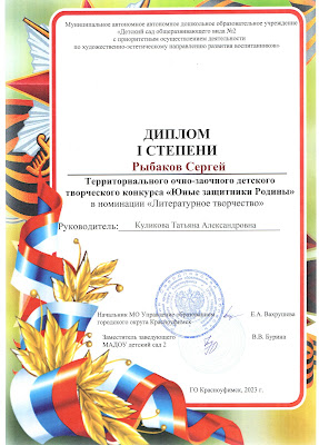 Участник всероссийского конкурса "Спасибо маленькому герою!" г. Москва